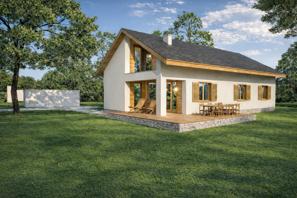 Indywidualny projekt budowlany domu jednorodzinnego wraz z zagospodarowaniem terenu, rozbiórki istniejących budynków gospodarczych oraz zmiana sposobu użytkowania istniejącego domu.