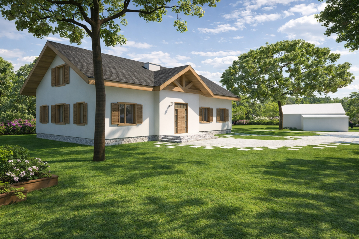 Indywidualny projekt budowlany domu jednorodzinnego wraz z zagospodarowaniem terenu, rozbiórki istniejących budynków gospodarczych oraz zmiana sposobu użytkowania istniejącego domu.
